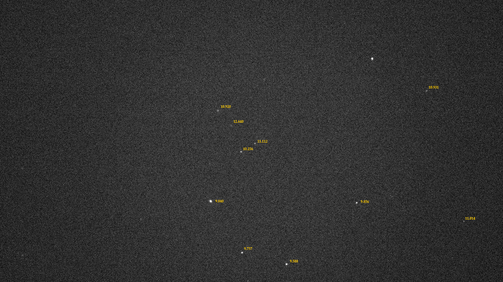 La estrella de magnitud 12,6 (se encuentra en el interior del triángulo que forman las tres estrellas más brillantes) ya no se ve tan cómodamente, pero es medible todavía.